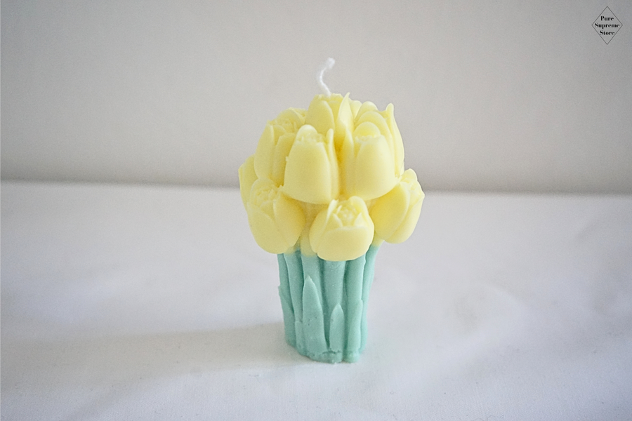 Decoratie kaars tulp geel & mintgroen | Handgemaakt