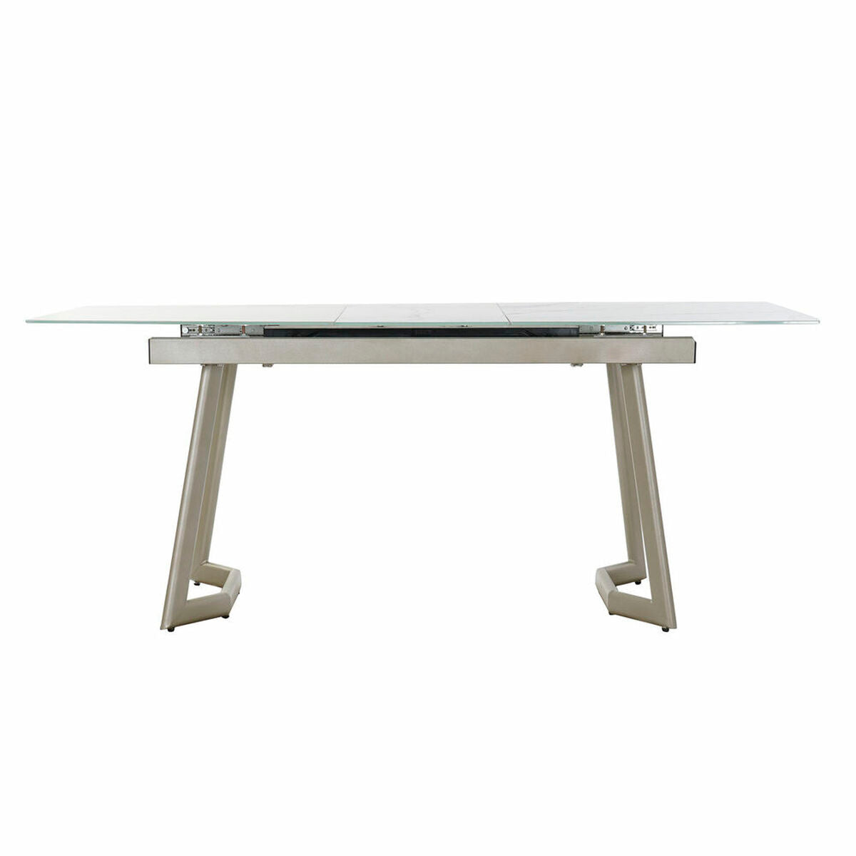 Het stevige metalen frame zorgt voor stabiliteit en langdurige ondersteuning, terwijl het kristallen blad een luxueus en modern accent toevoegt.