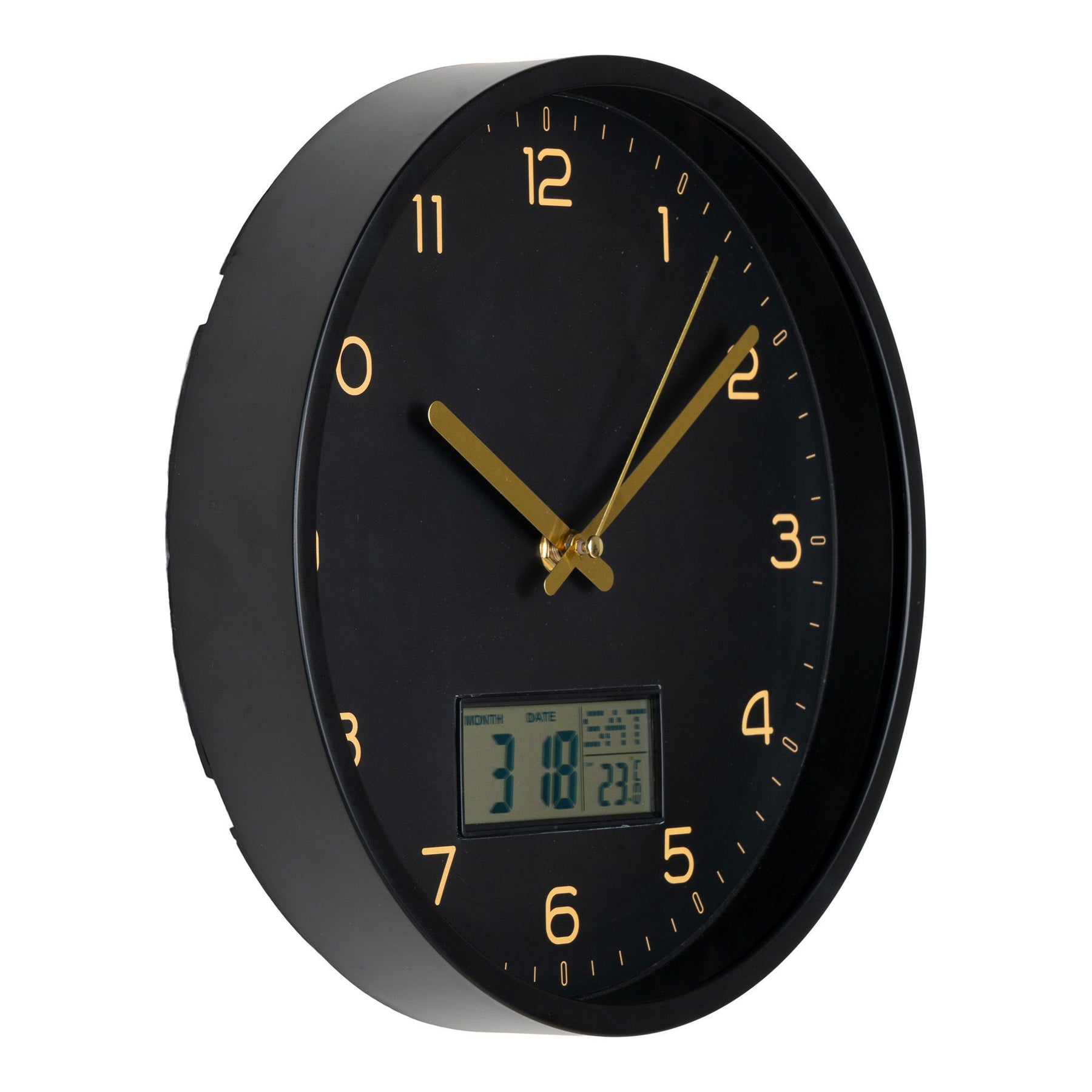De Amiens wandklok is een unieke combinatie van klassiek design en moderne technologie. Deze klok voegt niet alleen stijl toe aan jouw interieur, maar biedt ook praktisch gemak door het digitale display en de stille werking. Met zijn compacte formaat en strakke zwarte afwerking is dit een veelzijdig accessoire dat in elke ruimte, van woonkamer tot kantoor, een subtiel maar opvallend accent vormt.