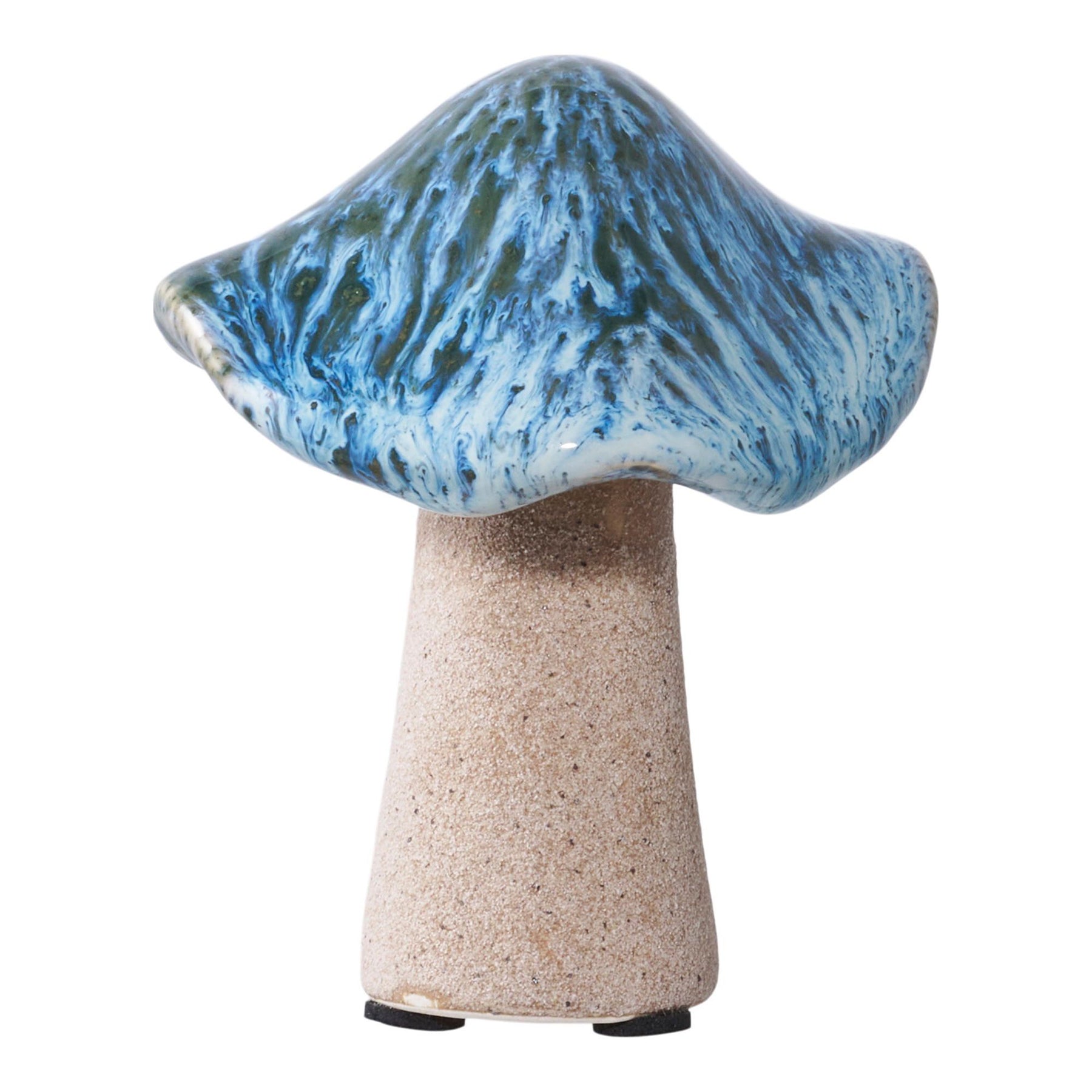 Pure Supreme Store presenteert een betoverende set decoratie paddenstoelen, vervaardigd uit keramiek in de kleuren groen, bruin en blauw.