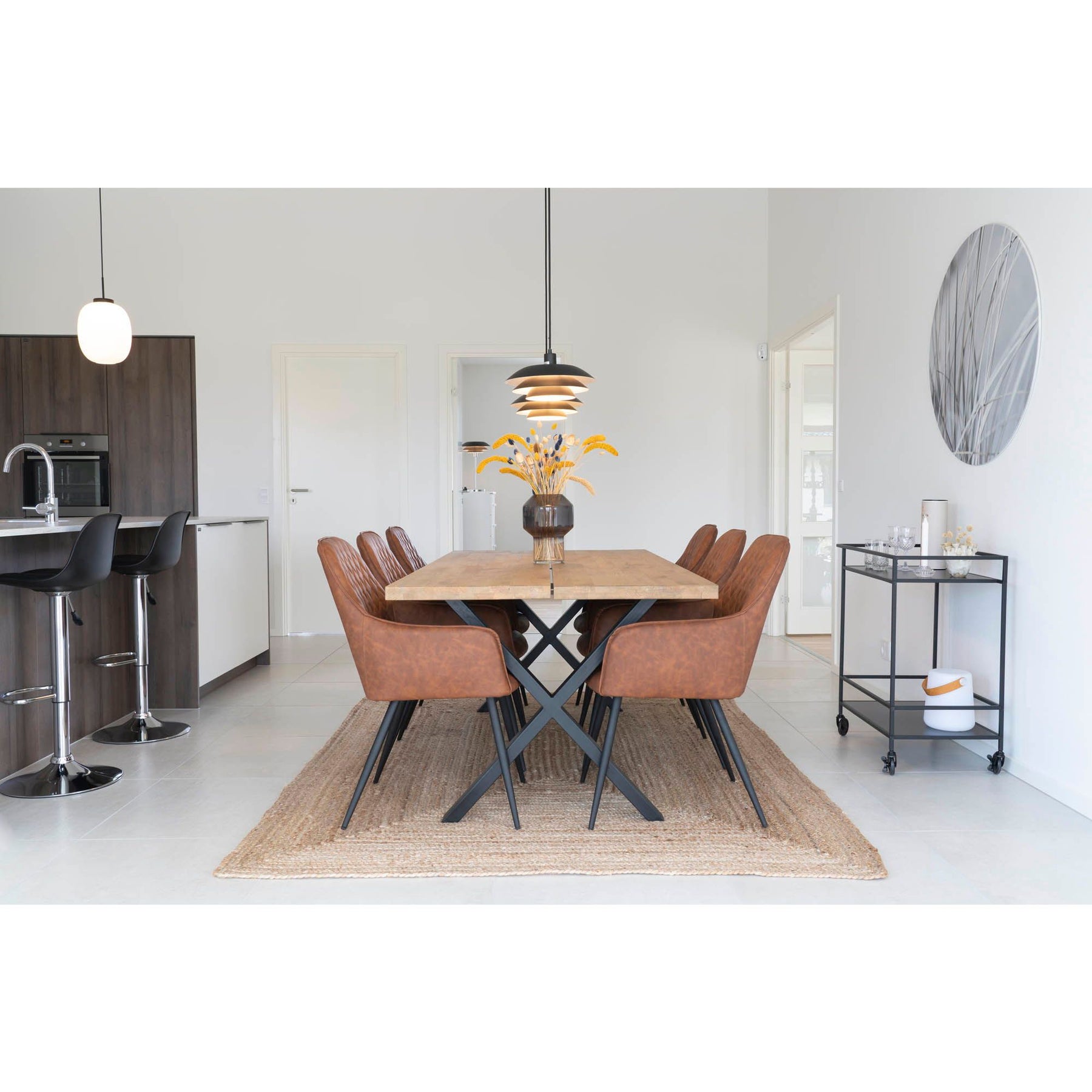 De vintage bruine kleur voegt warmte en elegantie toe aan de ruimte, terwijl de zwarte metalen poten zorgen voor een stoere, eigentijdse touch. Deze kleurcombinatie maakt de Harbo eetkamerstoel geschikt voor tal van interieurstijlen zoals industrieel, modern, landelijk of urban chic. De stoel laat zich prachtig combineren met houten eettafels, metalen accenten of natuurlijke materialen.
