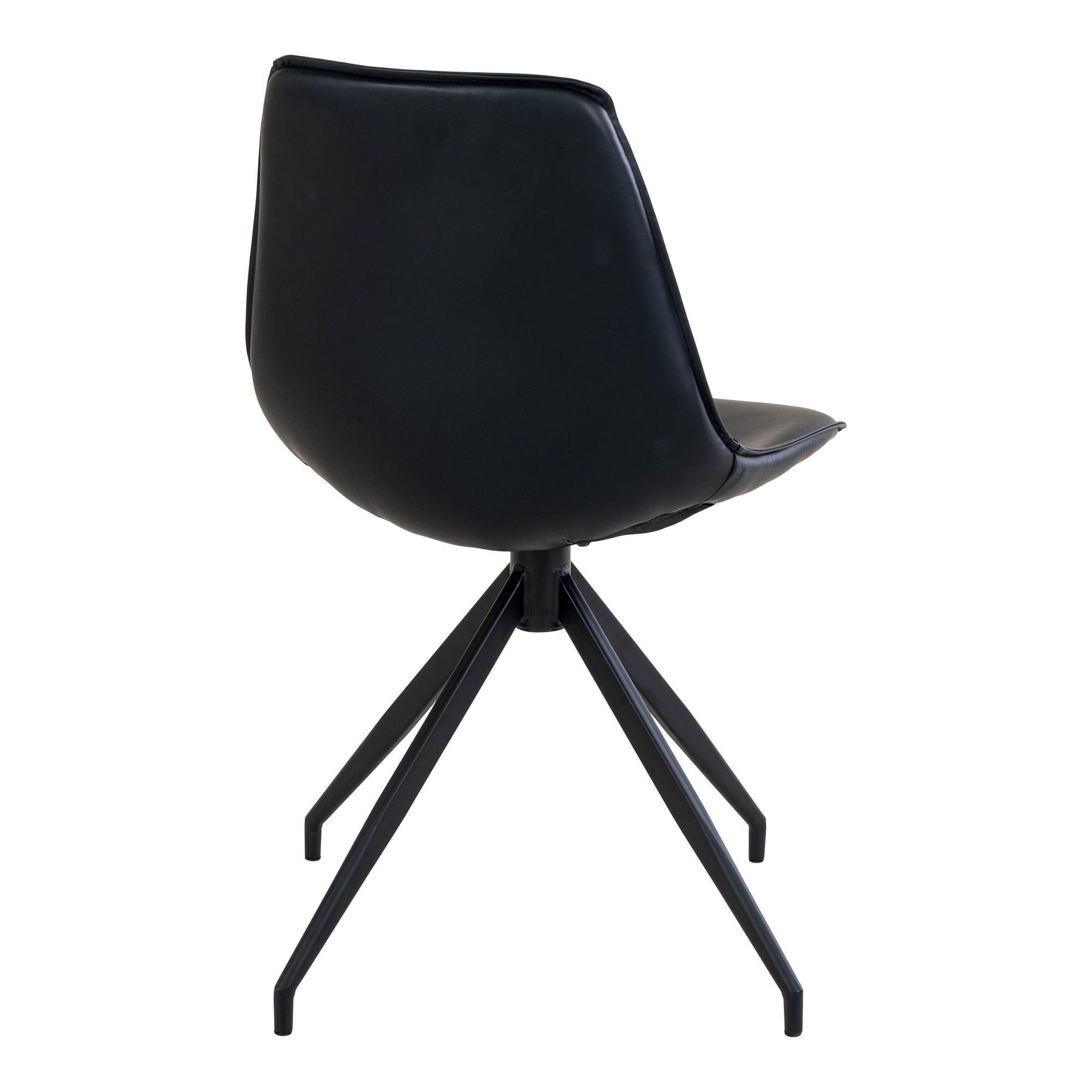 Uitgevoerd in zwart PU-leer met bijpassende zwarte metalen poten, straalt deze stoel een strak en eigentijds karakter uit. Dankzij de geïntegreerde swivel (draaifunctie) biedt de Monaco stoel extra flexibiliteit en comfort, ideaal voor dynamische eetruimtes en moderne woonstijlen.